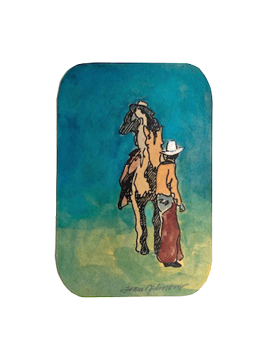 Cowboy and Lady Rider watercolor 5 x 7 inches